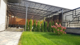 Односкатный навес пристрой к дому с кровлей поликарбоната