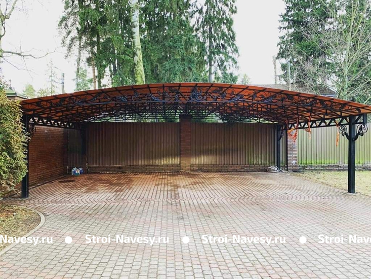 Стальной арочный навес с оранжевой крышей из поликарбоната