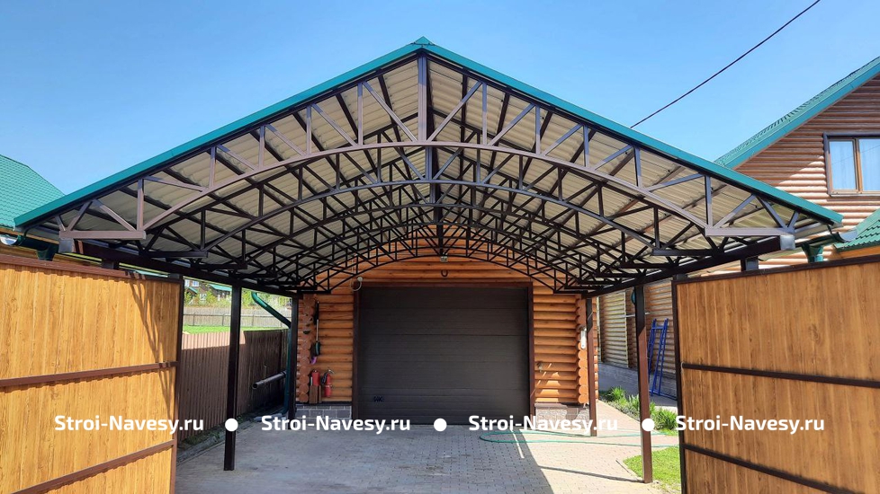 Двускатный автонавес с профлистом для автомобиля